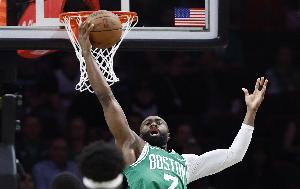 杰倫·布朗上半場火力全開,他出戰(zhàn)19分鐘,15投7中(三分3中2)、罰球2中1,拿下17分9籃板1助攻1搶斷,出現(xiàn)3次失誤,正負(fù)值+2。