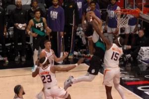 GIF-賽季最炸裂扣籃!夏普超遠(yuǎn)滑翔拉桿,隔著2米16馬威折疊暴扣!