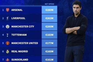 體育資訊2月4日訊 “轉(zhuǎn)會市場網(wǎng)”統(tǒng)計(jì)了本賽季到目前為止,轉(zhuǎn)會凈支出最高的十家俱樂部,英超6隊(duì)在列并占據(jù)前5名(單位:歐元;部分聯(lián)賽轉(zhuǎn)會窗尚未關(guān)閉)。