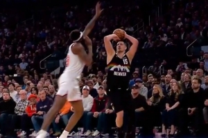 GIF-米切爾·羅賓遜殘暴大帽約基奇三分