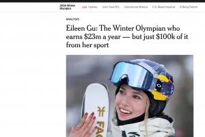 這位自由式滑雪世界杯歷史勝場最多的選手,將于本月在米蘭科爾蒂納冬奧會上衛(wèi)冕其大跳臺與U型場地技巧項目的冠軍。但盡管擁有獎牌與勝利,谷愛凌去年從滑雪項目中僅獲得10萬美元收入,其高達2300萬美元的收入來源于利潤豐厚的場外代言,這一數(shù)字使除高芙之外的所有其他運動員相形見絀。