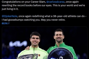 “諾瓦克·德約科維奇,你再次重新定義了一位38歲運(yùn)動(dòng)員的上限,看著你的比賽,我簡直起了一身雞皮疙瘩。愿你永不退役?!?/p>