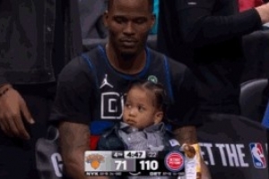 GIF-賈旺特·格林替補(bǔ)席抱上娃了