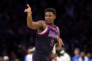 全場比賽,森林狼球星愛德華茲出戰(zhàn)40分06秒,33投19中,三分16中9,罰球10中8,空砍生涯新高的55分,另有4籃板3助攻進賬,正負值+8。