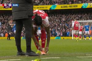 體育資訊02月07日訊 英超第25輪,阿森納vs桑德蘭。比賽開(kāi)場(chǎng)僅3分鐘,馬杜埃凱被拍到在場(chǎng)邊換鞋,他將左腳的一只鞋換成了另一個(gè)配色的F50。