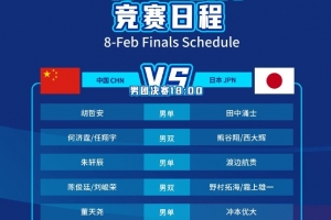 體育資訊2月8日訊 2026亞洲羽毛球團(tuán)體錦標(biāo)賽男團(tuán)決賽中國(guó)VS日本的對(duì)陣出爐,胡哲安作為一單出戰(zhàn)。