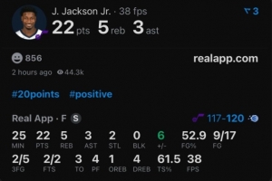 本場比賽,爵士新援小賈倫·杰克遜首秀表現(xiàn)不錯,出場25分鐘17投9中,三分5中2、罰球2中2拿到22分5籃板3助攻2搶斷,正負值+6。