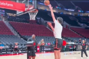 體育資訊2月8日訊 今日上午開拓者主場背靠背再戰(zhàn)灰熊,賽前楊瀚森和助教練習了對抗下的勾手,此外小楊還在三分線外變向過人單打了助教一個,氣氛比較輕松。