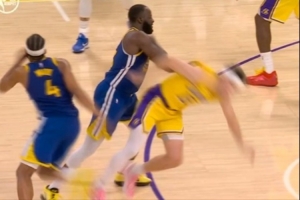 GIF-追夢(mèng)掩護(hù)時(shí)推翻里夫斯,被吹進(jìn)攻犯規(guī),克萊伯和追夢(mèng)差點(diǎn)沖突