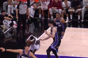 GIF-施羅德突破到籃下被前隊友雷諾打到
