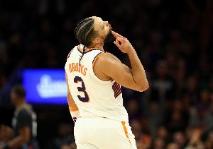 此役太陽(yáng)球員狄龍·布魯克斯出場(chǎng)35分鐘23投11中,三分10中2、罰球4中4拿到28分2籃板2助攻1搶斷,有4犯規(guī),正負(fù)值+10。