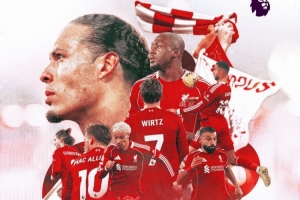 利物浦官方社媒發(fā)布了為此役制作的海報,范戴克、薩拉赫、埃基蒂克、麥卡利斯特、維爾茨、加克波、科納特、索博斯洛伊出鏡。