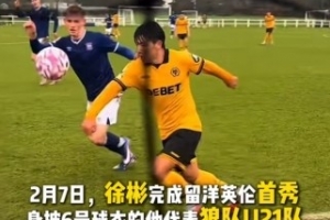 體育資訊2月8日訊 在徐彬代表狼隊(duì)U21完成本次留洋的首秀后,足球中國官方發(fā)文向徐彬送上祝賀和鼓勵(lì)。
