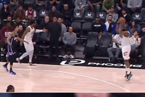 終場(chǎng)前2分多鐘,騎士反擊,米切爾回傳助攻哈登命中空位三分反超比分。在哈登投進(jìn)這球之前,米切爾已經(jīng)提前慶祝了。