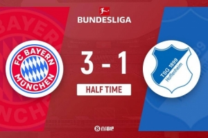 體育資訊2月9日訊 北京時(shí)間2月9日0點(diǎn)30分,德甲第21輪,拜仁慕尼黑在主場(chǎng)安聯(lián)競(jìng)技場(chǎng)對(duì)陣霍芬海姆。上半場(chǎng),迪亞斯造點(diǎn),阿克波古馬染紅,凱恩點(diǎn)射破門,阿斯拉尼頭球中框,諾伊爾失誤送禮,克拉馬里奇版平板比分,半場(chǎng)結(jié)束前迪亞斯再度造點(diǎn),凱恩點(diǎn)射雙響,迪亞斯補(bǔ)時(shí)自己打進(jìn)一球。上半場(chǎng)拜仁慕尼黑3-1霍芬海姆。
