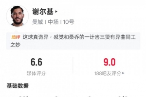 體育資訊2月9日訊 英超第25輪焦點(diǎn)戰(zhàn),曼城客場(chǎng)2-1逆轉(zhuǎn)利物浦。謝爾基替補(bǔ)登場(chǎng),1粒進(jìn)球被吹,貢獻(xiàn)2次搶斷,3次地面對(duì)抗成功,1次爭(zhēng)頂成功,評(píng)分6.6。
