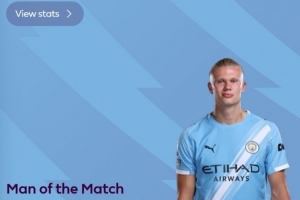 英超官方也在賽后宣布,哈蘭德當(dāng)選為本場(chǎng)比賽的官方MVP。