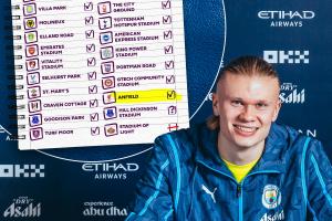 哈蘭德首次在安菲爾德進(jìn)球,英超出戰(zhàn)過的24個(gè)球場(chǎng),他已攻破23個(gè)球場(chǎng)大門,只剩埃弗頓新球場(chǎng)——希爾·迪金森球場(chǎng)還未進(jìn)球。