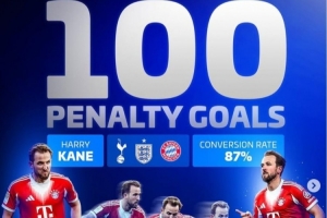 德轉(zhuǎn)數(shù)據(jù)統(tǒng)計(jì)顯示,凱恩也就此達(dá)成了俱樂部+國家隊(duì)生涯點(diǎn)球100球里程碑,命中率為87%。
