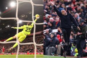 體育資訊02月09日訊 英超第25輪,曼城2-1逆轉絕殺利物浦。比賽補時階段,麥卡利斯特的凌空遠射發(fā)生折射變線,多納魯馬貢獻神撲將球托出,力保球門不失!