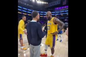 GIF-庫里詹姆斯賽后交談 海斯試圖介入 但……