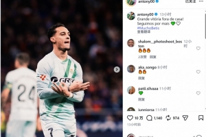 安東尼社媒曬出慶祝的照片,配文:“在客場取得漂亮勝利,繼續(xù)加油!”