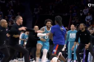 體育資訊02月10日訊 NBA常規(guī)賽,活塞vs黃蜂,杜倫、迪亞巴特、小橋、斯圖爾特揮拳相向被驅(qū)逐。