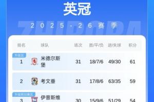 目前米德爾斯堡迎來六連勝,31輪18勝7平6負(fù)積61分,以2分優(yōu)勢領(lǐng)跑英冠。蘭帕德執(zhí)教的考文垂近3輪2負(fù)1平,31輪積59分第二。