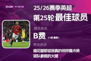2025-2026賽季英超火熱進(jìn)行中,體育資訊和咪咕體育聯(lián)合發(fā)起每輪英超最佳球員評選活動(dòng)!第25輪評選結(jié)果已經(jīng)出爐,曼聯(lián)中場B費(fèi)當(dāng)選!曼聯(lián)球員連續(xù)5輪斬獲此獎(jiǎng)項(xiàng),此前4輪分別是舍什科、B費(fèi)、庫尼亞、卡塞米羅。