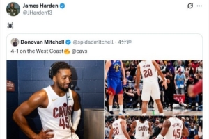 賽后,米切爾發(fā)推寫道:“西部客場(chǎng)之旅4勝1負(fù)?!惫寝D(zhuǎn)發(fā)了這條動(dòng)態(tài),并配上了一個(gè)???的表情。