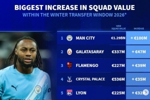 體育資訊2月10日訊 各大聯(lián)賽冬季轉(zhuǎn)會(huì)窗基本都已關(guān)閉,《轉(zhuǎn)會(huì)市場(chǎng)》也統(tǒng)計(jì)了經(jīng)歷這個(gè)冬窗之后的球隊(duì)身價(jià)上漲最多情況,曼城無(wú)懸念居首。