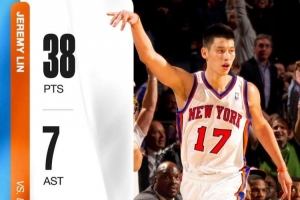 本場比賽,尼克斯以92-85擊敗湖人;林書豪出戰(zhàn)38分34秒,投籃23中13,三分4中2,罰球13中10,得到38分4籃板7助攻2搶斷。