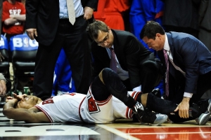 2012年季后賽首輪G1,公牛對陣76人,德里克·羅斯在比賽最后時刻突破時受傷,在跳起后落地時遭遇了左膝十字韌帶撕裂,羅斯也因此賽季報銷并缺席了之后的2012-13賽季。