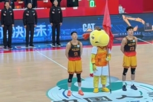 CBA常規(guī)賽第十七輪南通賽區(qū)江蘇肯帝亞vs新疆伊力特,奏唱國歌環(huán)節(jié),球員閆實、劉澤希領(lǐng)唱國歌。一起為肯帝亞男籃加油助威!