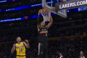 GIF-秀起來了!??怂箵寯嗫栈@不上,扭個(gè)身子給文班來個(gè)打板空接暴扣~