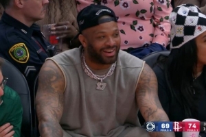 體育資訊2月11日訊 NBA常規(guī)賽,火箭102-95擊敗快船。此役前火箭球員PJ·塔克現(xiàn)場(chǎng)觀戰(zhàn)。