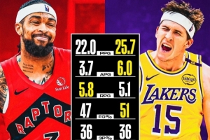 英格拉姆:場(chǎng)均22.0分3.7助攻5.8籃板0.8搶斷0.8蓋帽,投籃命中率47%,三分命中率36%,真實(shí)命中率57%。