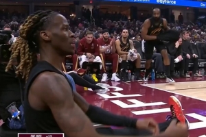 GIF——基翁·埃利斯倒地 哈登從替補(bǔ)席上沖上去拉起隊(duì)友
