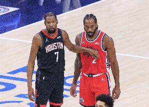 首節(jié)比賽,兩隊(duì)核心杜蘭特和倫納德都沒(méi)有太多發(fā)揮,其中杜蘭特3中0,三分球2中0,沒(méi)有得分入賬,僅拿到2籃板2助攻的數(shù)據(jù);倫納德4中1,三分球1中0,拿到2分1籃板的數(shù)據(jù)。