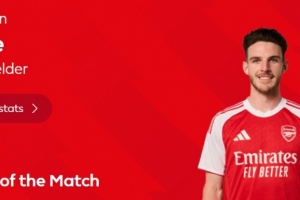 本場比賽賴斯首發(fā)表現(xiàn)不俗,賽后當選英超官方球迷票選全場最佳球員。以下為他在本場數(shù)據(jù):