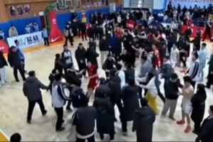 體育資訊1月20日訊 在今日耐高山東賽區(qū)決賽(兩回合制)第二場的比賽中,淄博十一中(楊瀚森母校)與濰坊一中在賽場發(fā)生大規(guī)模肢體沖突,現(xiàn)場甚至出現(xiàn)“家長追打?qū)Ψ角騿T”的混亂場面。