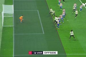 庫巴西第52分鐘亂戰(zhàn)中破門,VAR介入,經(jīng)過長時(shí)間審查后判定越位在先進(jìn)球無效。