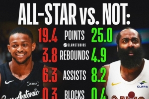 美媒Slamstudios曬出上圖并寫道:“哈登的全明星被搶了?”