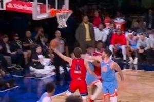 體育資訊2月14日訊 NBA全明星新秀賽決賽,卡特隊(duì)25-24險(xiǎn)勝安東尼隊(duì),比賽中前CBA球員、解說嘉賓曾令旭談到了卡特隊(duì)布澤利斯用腳步單打克林根的一個(gè)進(jìn)球。