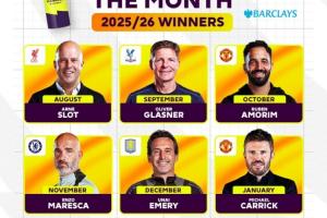 體育資訊02月14日訊 英超官方此前宣布,曼聯(lián)主帥卡里克當選英超一月最佳教練,英超也曬圖總結(jié)了本賽季目前為止的六位月最佳教練得主。六人分別是: