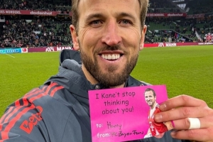時值情人節(jié),拜仁官推也曬出了凱恩手持愛心卡片的互動照,凱恩手持著一張印有表白的卡片:“拜仁球迷致凱恩:我們無法停止想念你!”其中,can還借用了凱恩Kane名字的諧音。