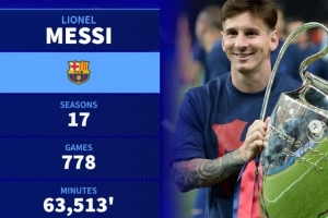 梅西(巴薩):17個賽季,778場,63513分鐘,1.8億