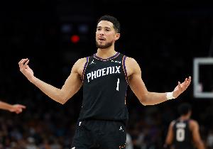 “布克壓軸登場(chǎng),開局10連中!超遠(yuǎn)也進(jìn)了,45度角全中,眼看要封神……結(jié)果花球筐只進(jìn)了2個(gè),27分,差2分惜??!