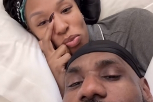詹姆斯曬出他和妻子躺在床上的自拍合影,并評(píng)論道:“????????????????????情人節(jié)快樂(lè)!笑死我了??”