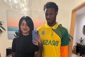 布朗尼曬出他和女友的自拍合影,并寫道:“情人節(jié)快樂??????????”